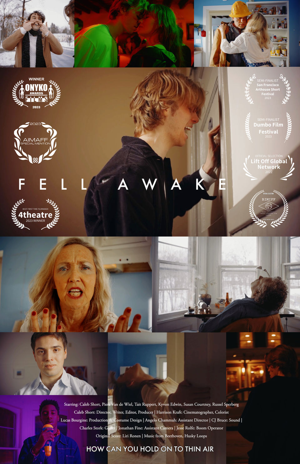“My birthday was yesterday, was it not?” 'Fell Awake' explores the transience of life, time, and interpersonal relationships. We follow our central character, Elias, during the night of his 21st birthday party and the day to follow. In this new day, time, space, and the relationships with those closest to him have changed. “All time is immemorial. The present is the future ignored, the past not remembered; but how can you hold on to thin air?”